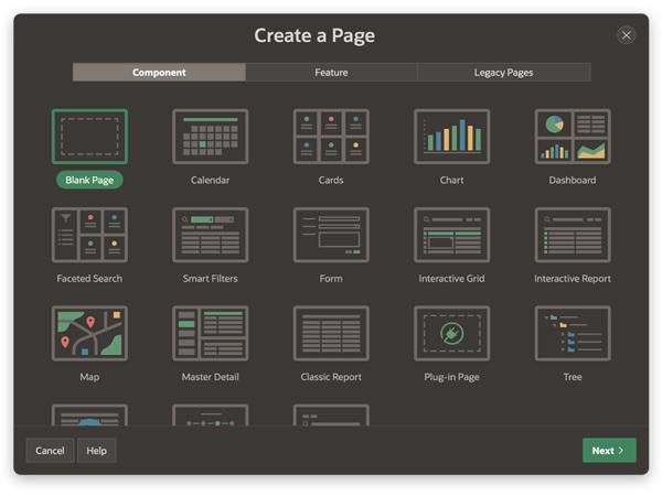 The Create Page wizard has been drastically simplified to make it easier than ever before to create pages in your APEX apps. We've streamlined the wizard by applying smart defaults, minimizing user input, improving page navigation, and more.