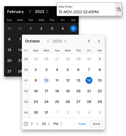 The new Date Picker loads faster, responds quicker to user interaction, and comes with full keyboard support as recommended by ARIA APG.