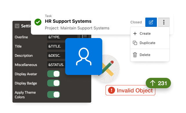 Universal Theme now includes Template Components for Avatar, Badge, Comments, Content Row, Media List, and Timeline. Many of these components are intended to replace Classic Report templates that provided similar design patterns, but now available as fully declarative Template Components that are far easier to configure and use.